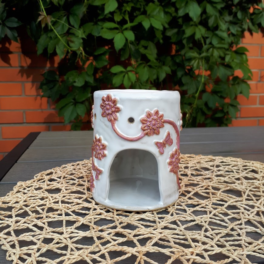Käsitööna valminud unikaalne keraamiline aroomilamp. Aseta kausikesse aroomivaha või aroomivaha, süüta lambis teeküünal ja naudi meeldivaid lõhnu ning rahustavat küünlavalgust.