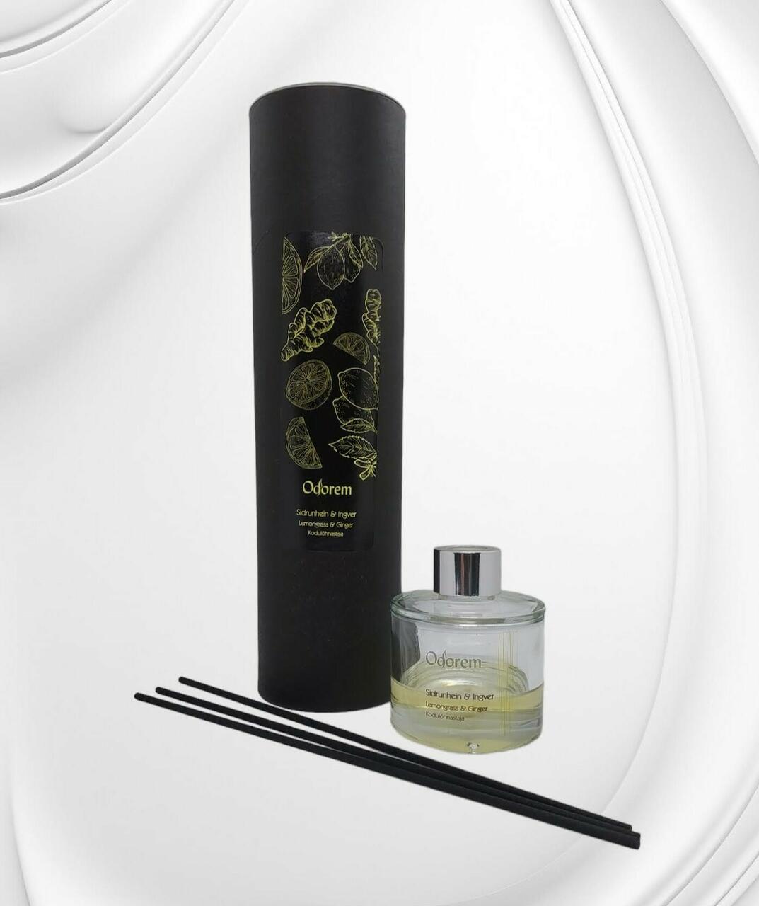 Sidrunheina ja ingverilõhnaline kodulõhnastaja annab meeldiva lõhna teie kodule mitmeteks nädalateks. Tsitruse lõhna tasakaalustab kergelt vürtsikas ingver.Difuuserite põhjaks kasutame keskkonnasõbralikku toodet, millel on madal süsiniku jalajälg ja mis ei ole toksiline. Valmistatud sojast ja kookosest.