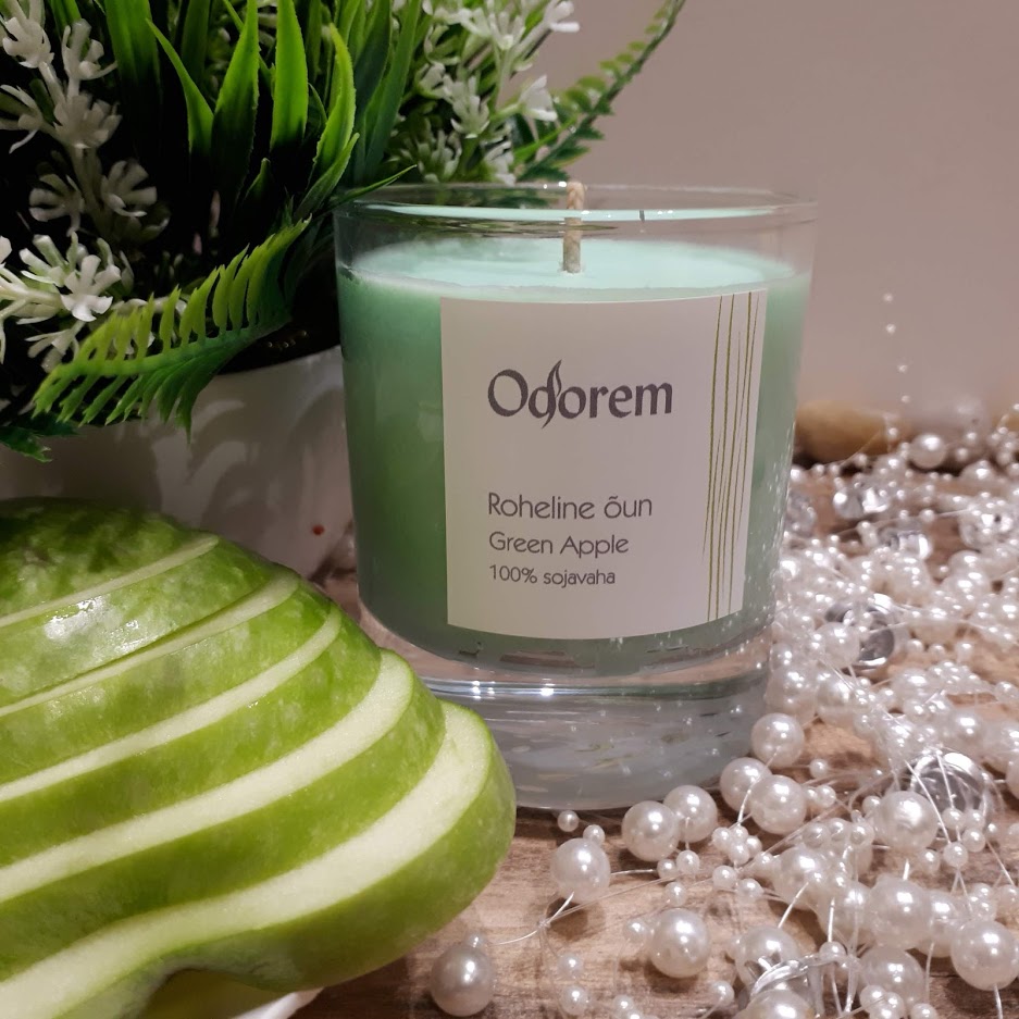 Sojavahast lõhnaküünal värske mahlase rohelise õuna aroomiga. Just kui oleks äsja võtnud ühe suure ampsu .... Sobib neile, kes eelistavad õrnu puuviljalisi lõhnu.