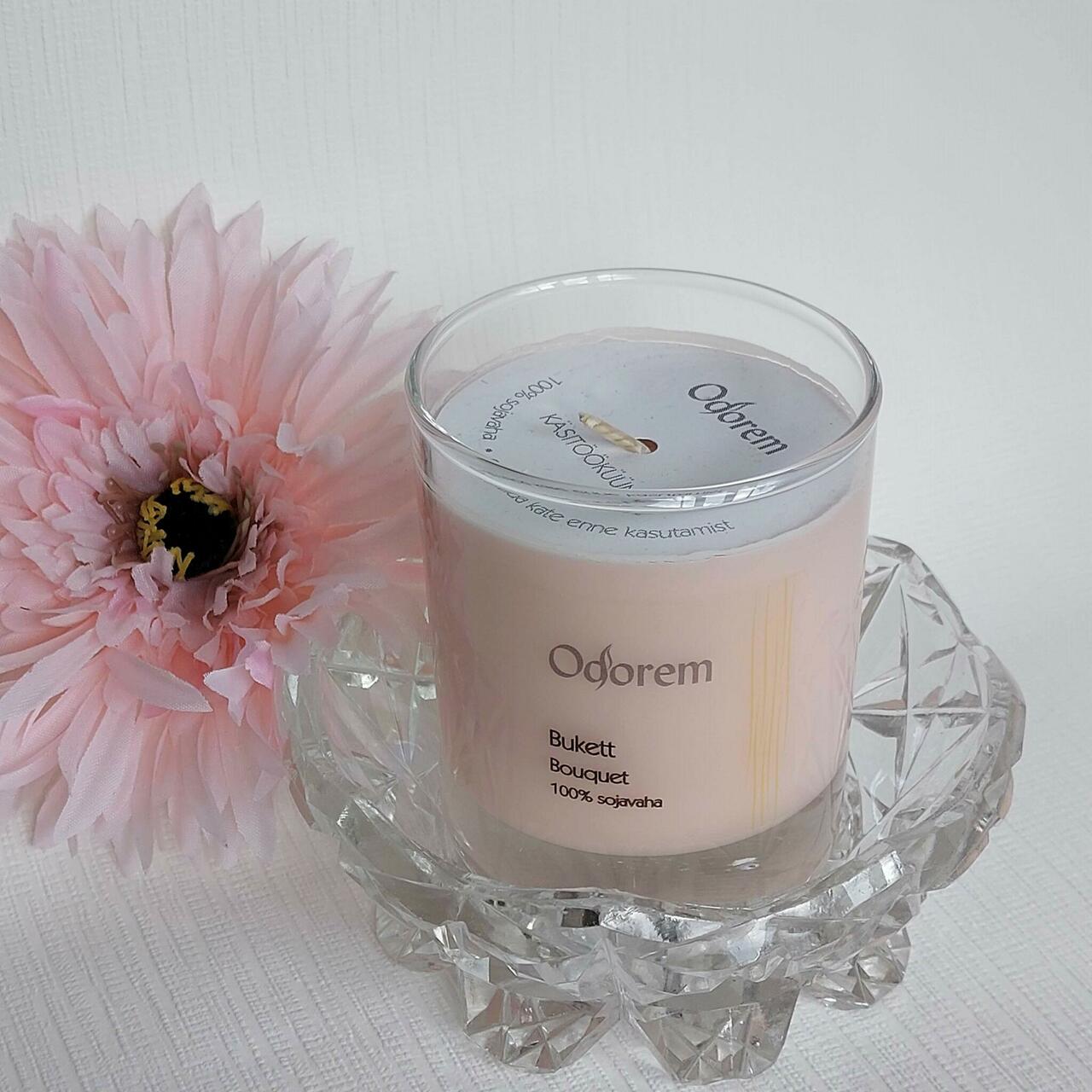 Sojavahast küünal, mille lõhnabuketis on tunda mahlast apelsini, sidrunheina, bergamoti, mida toetab värske lilleline aroom.